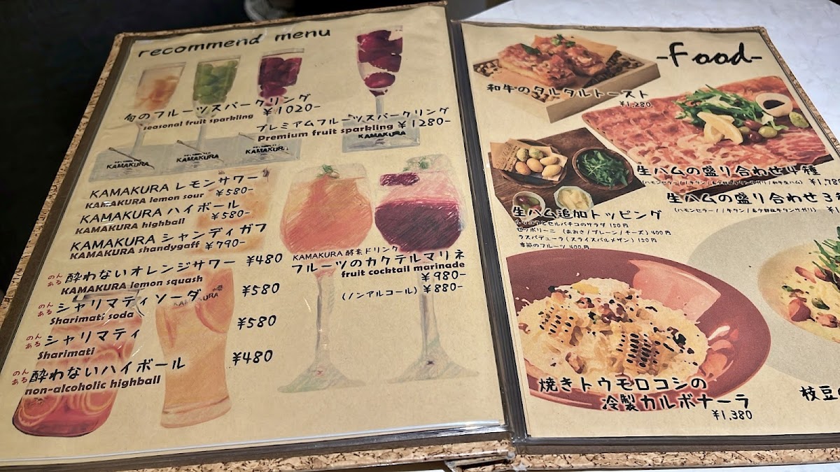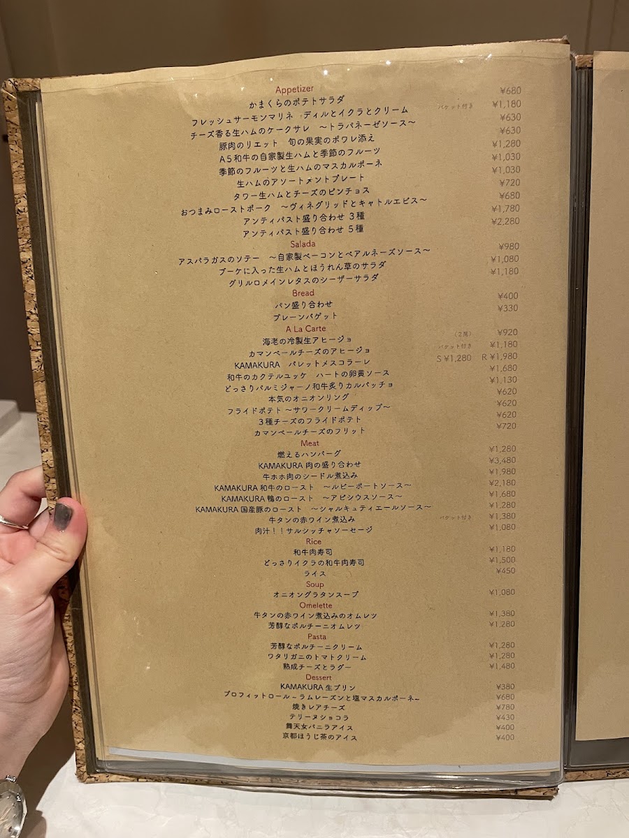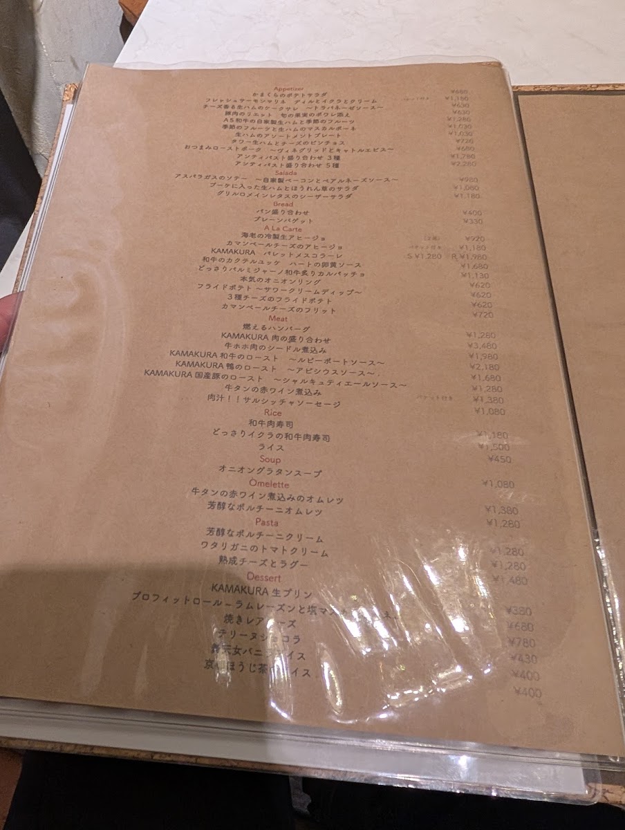 Warm dishes stand out in the à la carte section, particularly the comforting Camembert Cheese Ajillo and the elegant Chilled Shrimp Ajillo (2 pieces). Meat lovers are well rewarded with signature items such as the dramatic Flaming Hamburg Steak and the generous KAMAKURA Meat Platter, both reinforcing the restaurant’s focus on quality beef. The menu rounds out beautifully with satisfying staples like Wagyu Beef Sushi, the aromatic Porcini Omelette, and the indulgent Homemade Pancetta Carbonara Tagliatelle. To finish, desserts such as the silky KAMAKURA Fresh Pudding and the refined Profiterole with Rum Raisins and Salted Mascarpone leave a lasting impression. Overall, the menu feels cohesive and thoughtfully designed, making Kamakura Shinjuku a destination where variety, value, and craftsmanship come together seamlessly.